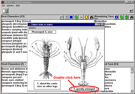 Click on peraeopod 3 greatly enlarged and one taxon remains. The screen shows a brief history of the identification with remaining taxon name, highlighted in yellow, at the end.